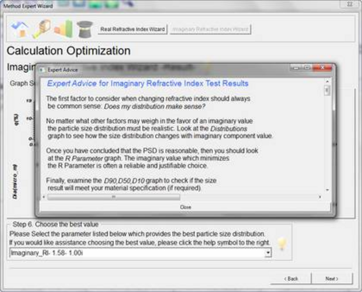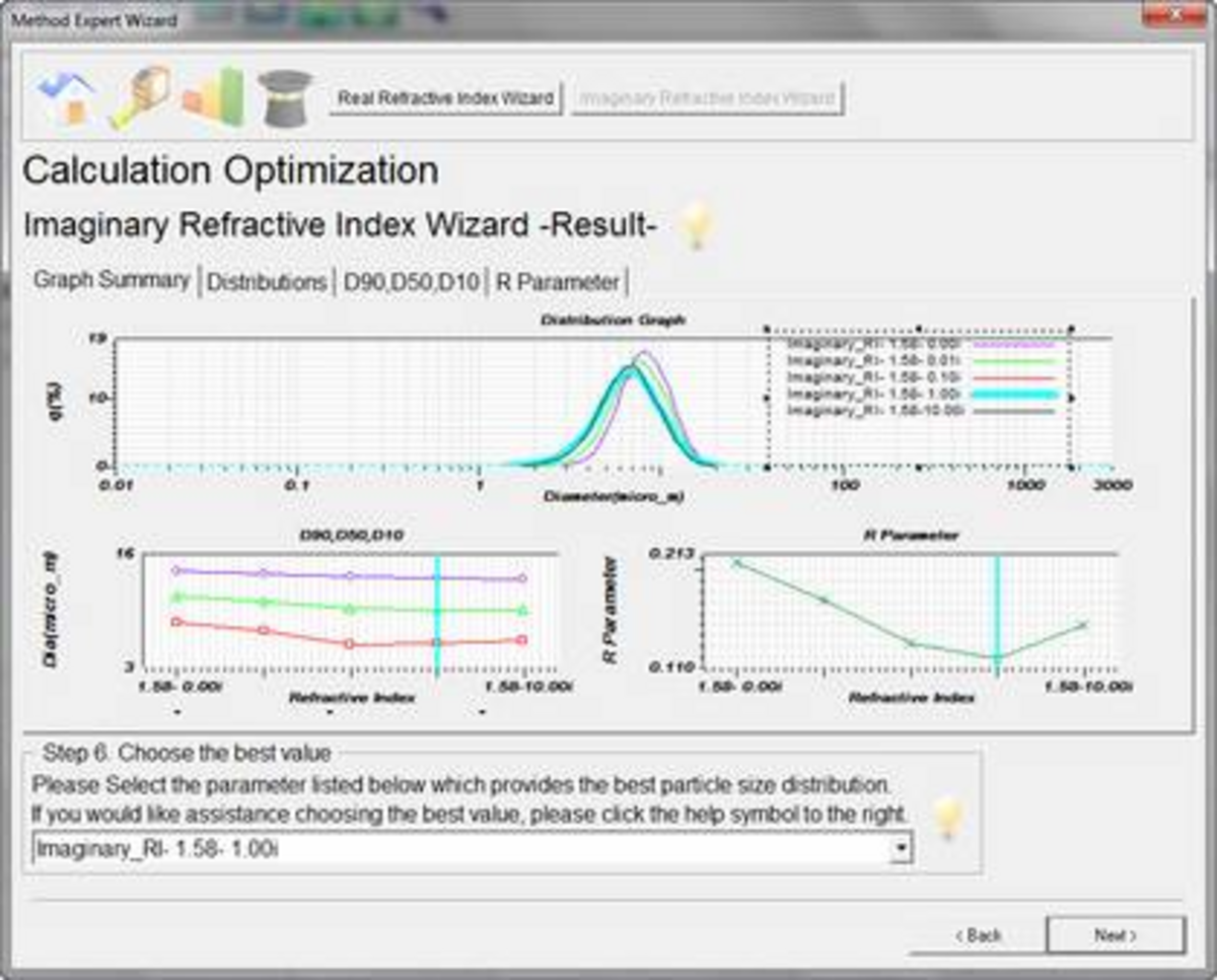 The same wizard can also be used to select the optimum real RI component while keeping the i term fixed. This approach works for the majority of samples, but the user must still also decide that the result generated meets expectations or correlates to another technique or product performance.