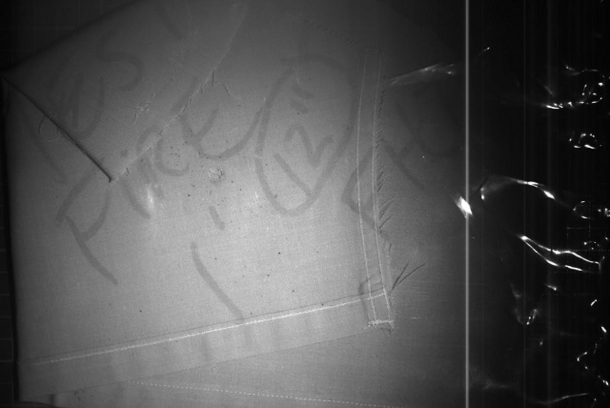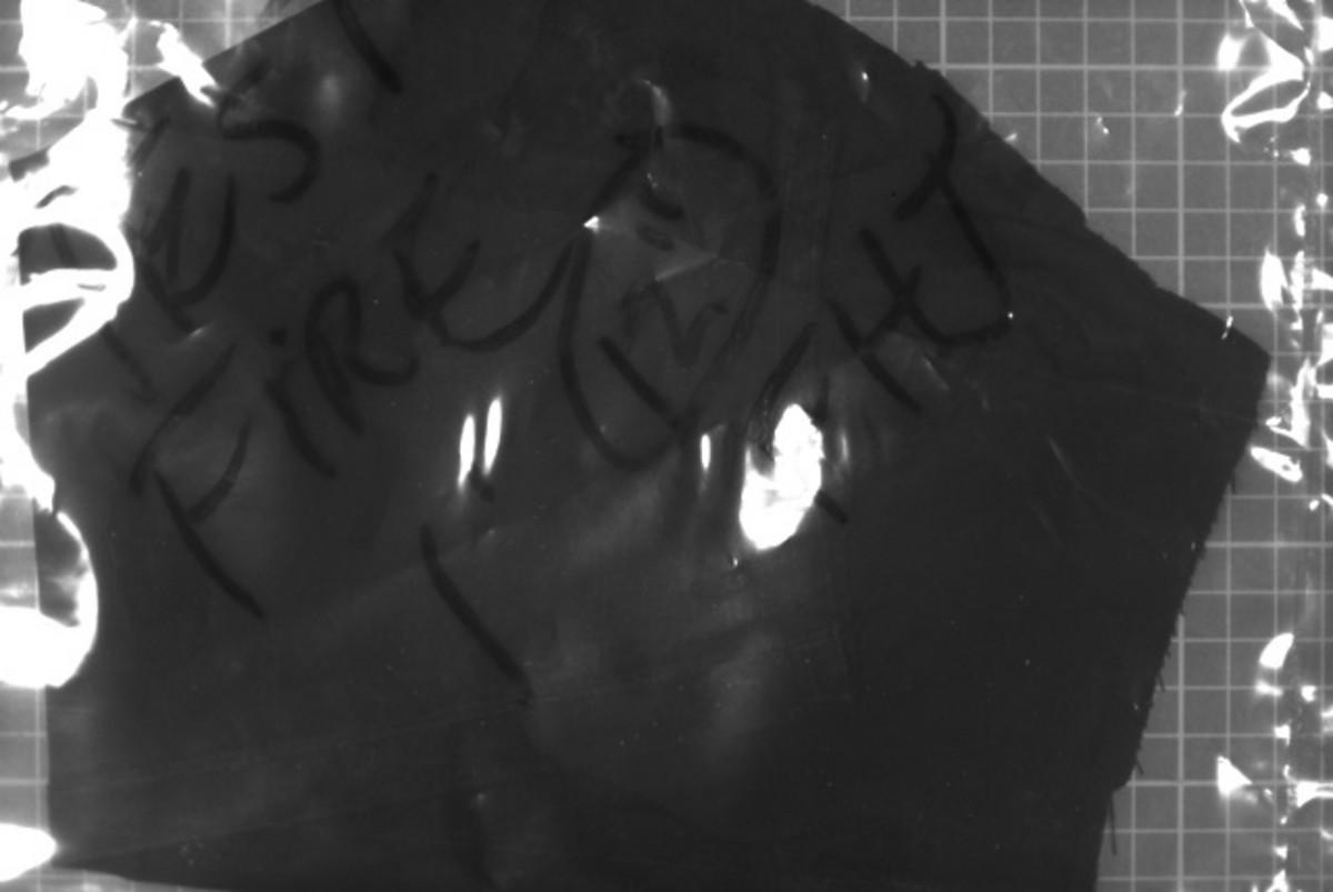 Cloth (under plastic) fired at from a distance of 1 foot; visualized under IR630nm light with a 715nm longpass IR camera filter.
