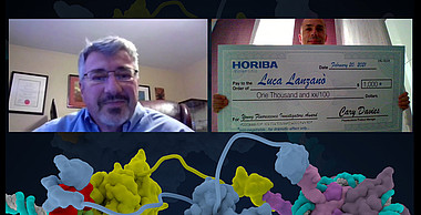 Along with the recognition, HORIBA presented a $1000 check to Dr. Lanzano, and a crystal award.