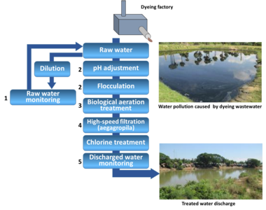 - Survey of dyeing factories’ scale and amount of discharged water, and status of river water pollution
