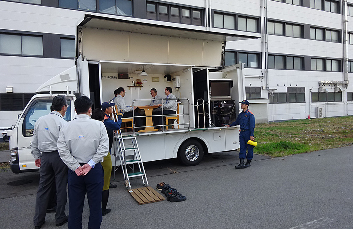 We established a fire defense organization for self-protection and conduct regular training. To prepare for emergencies, we also organize fire/disaster drills and AED (automated external defibrillator) basic life-saving training. In order to ensure the safety of employees and prepare for business continuity even in the event of a disaster such as an earthquake, we implement comprehensive disaster prevention drills and review the contents, quantity, storage method, etc. of disaster prevention stockpiles in all bases.