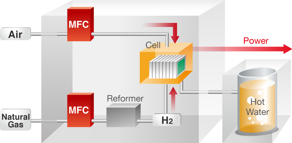 HORIBA offers an extensive product portfolio for use in the production and inspection of Fuel Cells, including flow controllers for gases and liquids. In addition to this, we also offer a liquid vaporizer system.