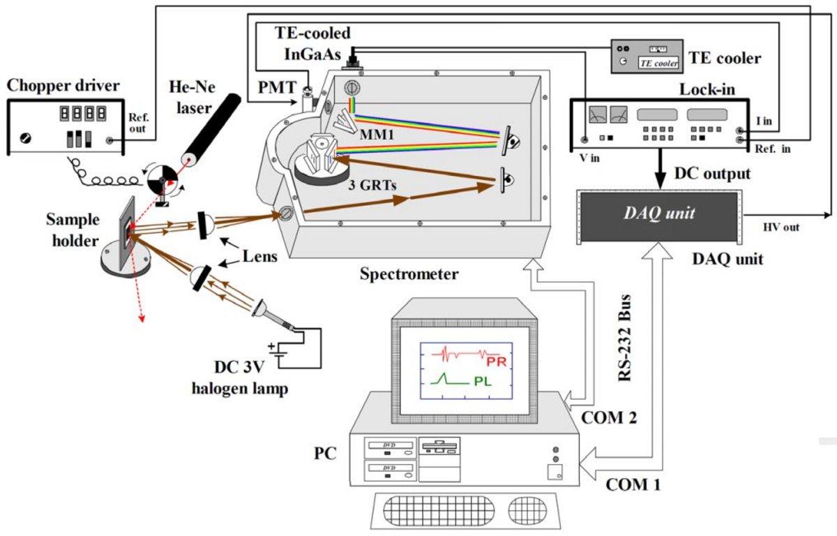 As a result of rapid development in semiconductor manufacturing, many types of optoelectronic devices such as laser diodes, LEDs, and high-electron-mobility transistors (HEMTs) are now fabricated by epitaxial-growth methods. To improve and characterize their quality, these devices are optically inspected. Photoluminescence (PL) and photoreflectance (PR) spectroscopy are among the most important optical methods. PL and PR are contactless, non-destructive techniques, and different kinds of optical information can be acquired from each. PL studies photons emitted from a material or device when excited by an external light source.