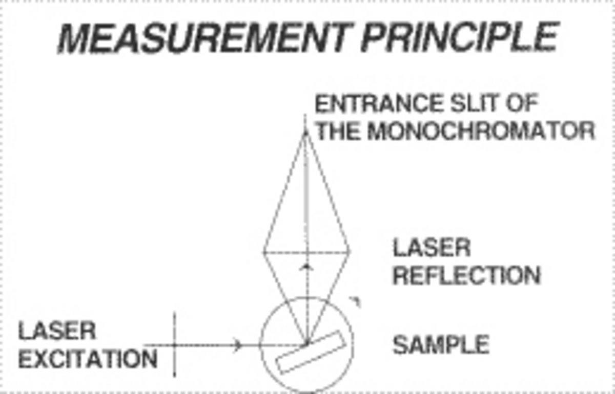An Argon laser beam is focused on the sample which is located in the center of the sample compartment. If the energy of photons coming from the laser source is greater than the energy gap of the semiconductor, the sample emits photons. These are collected and analyzed with a dual flat field spectrograph. Two detectors are used, a CCD and an InGaAs array. This system allows investigations from 0.75 to 2.4 eV.