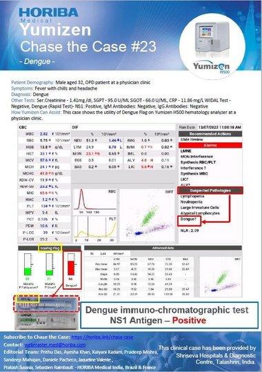 Chase the Case #23 showcases a case obtained with HORIBA's new Yumizen H500 analyzer, specifically designed for small mid-size laboratories. Discover how its Dengue flag can detect the possibility of Dengue Infection.